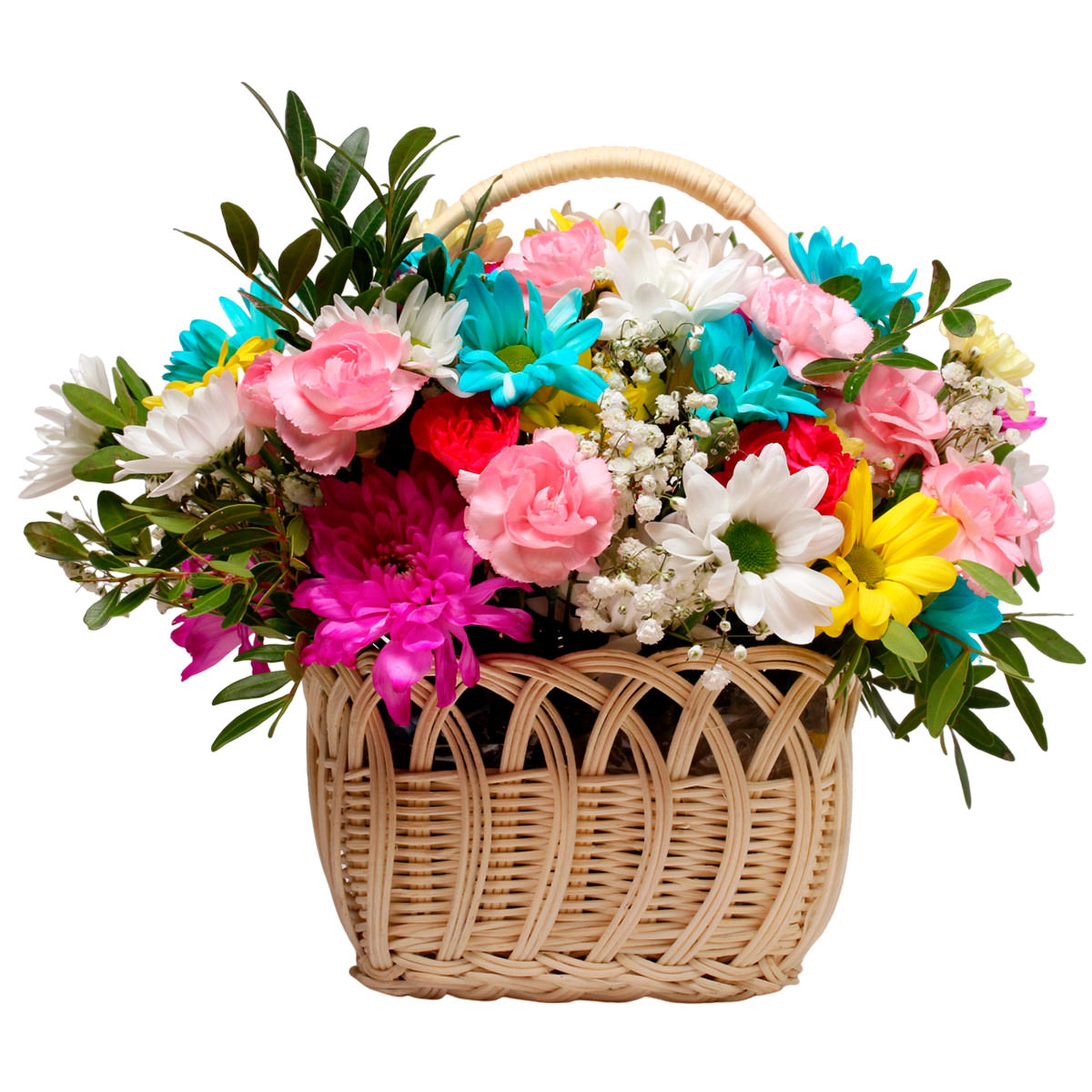 Корзиночка с цветами «Радужный сон» с гарантией качества, цены и быстрой доставки!